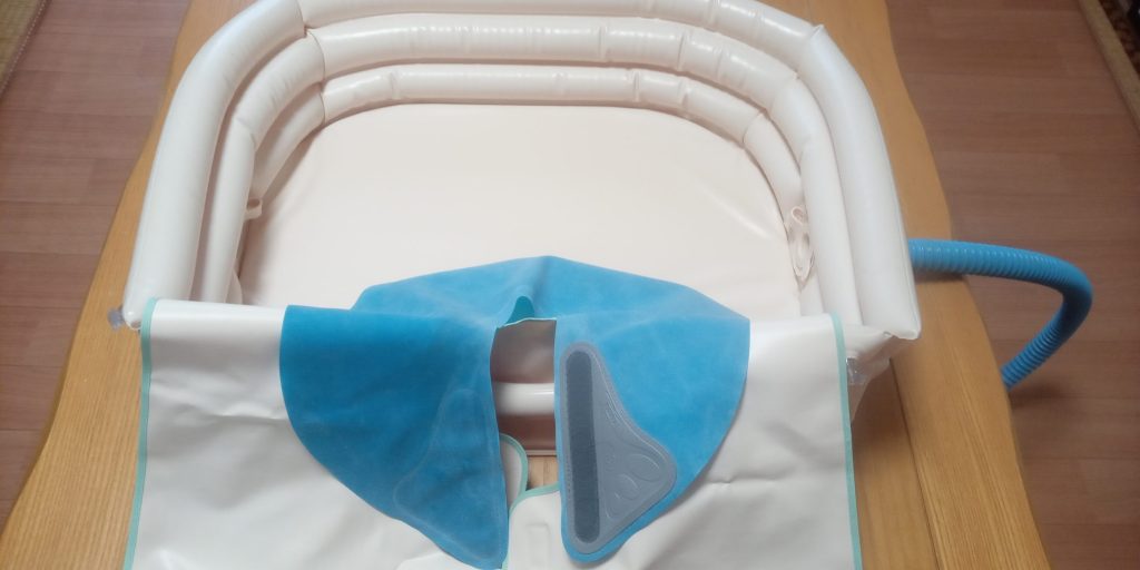 向日葵では「サッパリさん」という洗髪器を使用してベッド上で洗髪しています。